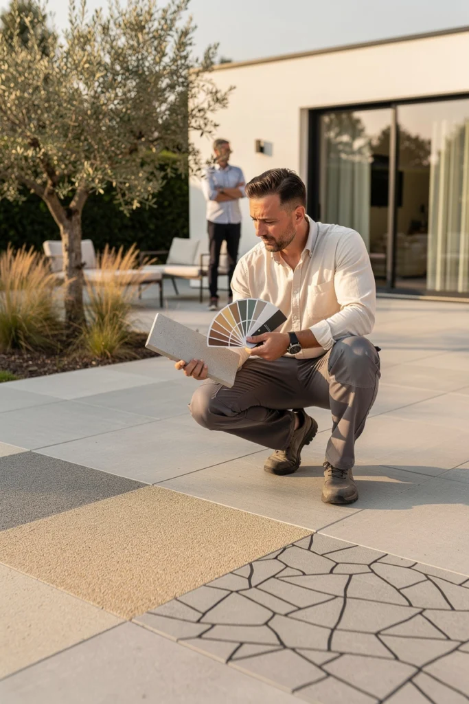 - Textures variées : béton lisse, matricé, balayé, désactivé, imprimé